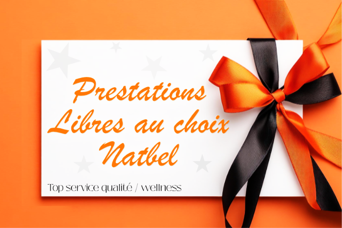 Le receveur du chèque cadeau pourra librement choisir la prestation bien-être souhaitée selon sa valeur a l'institut Natbel, soit pour un massage, un soin, ou tout autre prestation proposée et réalisable à l'institut.