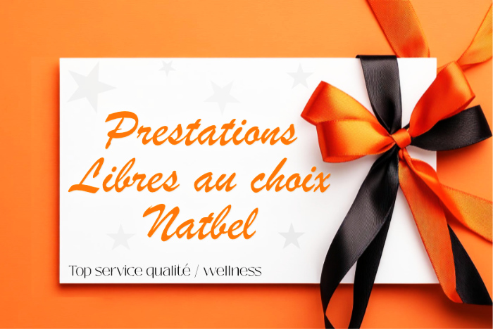 Le receveur du chèque cadeau pourra librement choisir la prestation bien-être souhaitée selon sa valeur à l'institut Natbel, pour un massage, un soin, ou tout autre prestation proposée et réalisable à l'institut.